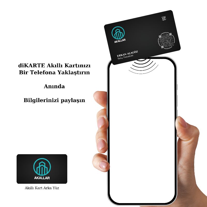 Karşınızda diKARTE AKILLI KART. Bu popüler seçim, bağlantı kurma şeklinizi değiştirmek için tasarlanmış; stil, pratiklik ve teknoloji arasındaki mükemmel dengeyi sağlar. Bu kartta göz alıcı tasarımından daha fazlası var. Ağ yazılımımızla beslenen ve NFC teknolojisi ile geliştirilmiş diKARTE, profesyonel ayrıntılarınızın, basit bir dokunuşla sorunsuz bir şekilde paylaşılmasını sağlar.