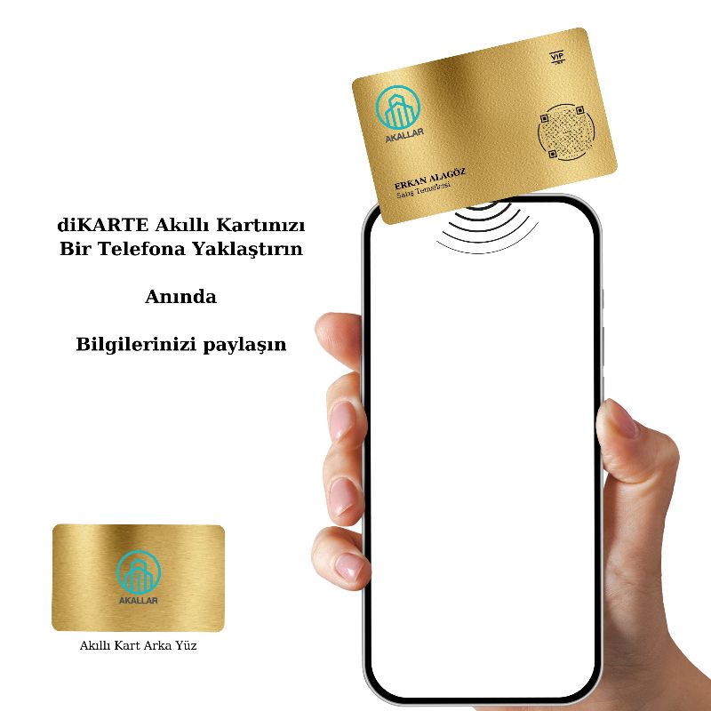 Karşınızda diKARTE AKILLI KART. Bu popüler seçim, bağlantı kurma şeklinizi değiştirmek için tasarlanmış; stil, pratiklik ve teknoloji arasındaki mükemmel dengeyi sağlar. Bu kartta göz alıcı tasarımından daha fazlası var. Ağ yazılımımızla beslenen ve NFC teknolojisi ile geliştirilmiş diKARTE, profesyonel ayrıntılarınızın, basit bir dokunuşla sorunsuz bir şekilde paylaşılmasını sağlar.